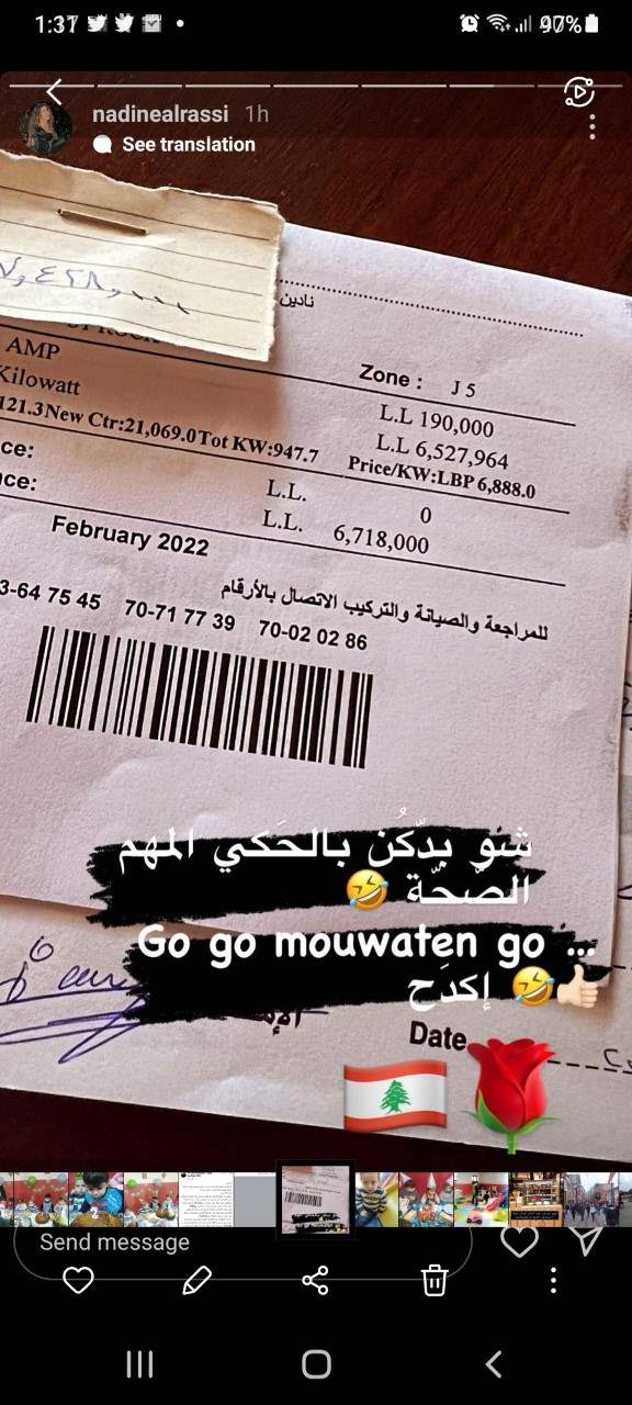 Beirut24 Admin2022-03-03T15:19:00+02:00نادين الراسي تنشر صورة فاتورة الموتور: المهم الصحةBeirut24 Admin2022-03-03T15:19:00+02:003 آذار 2022|