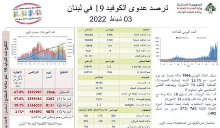 ماذا سجل عداد كورونا في لبنان اليوم؟