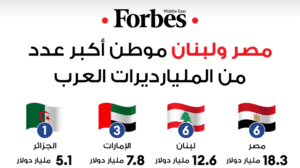 وتضم مصر ولبنان أكبر عدد من الأثرياء العرب بواقع 6 مليارديرات لكل منهما، فيما يبلغ صافي ثروة المليارديرات المصريين مجتمعة 18.3 مليار دولار، وهم الإخوة محمد ويوسف وياسين منصور، الشقيقان ناصف ونجيب ساويرس، وكذلك محمد الفايد الذي يبلغ من العمر 93 عامًا والمالك السابق لمتجر السلع الفاخرة (Harrods). ويبلغ صافي ثروة المليارديرات اللبنانيين 12.6 مليار دولار. ومن بينهم الشقيقين نجيب وطه ميقاتي، وأبناء رئيس الحكومة الراحل رفيق الحريري وهم بهاء وأيمن وفهد الحريري.