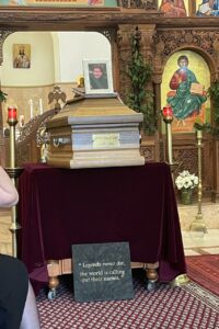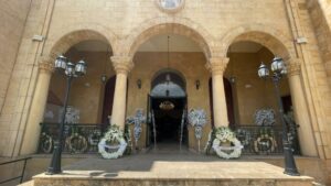 وعلى الاثر، نقل الجثمان إلى مطرانية بيروت للروم الكاثوليك، في المتحف، حيث سُجي جثمانه قبل صلاة الجنازة. وحضر إلى الكنيسة معزيا، اضافة الى الاطباء الزملاء وتلامذة الطب الذين ودعوا استاذهم المفضل، عدد من الرؤساء والوزراء والنواب والشخصيات من بينهم ممثل عن رئيس الجمهورية ميشال عون، والرئيس ميشال سليمان.