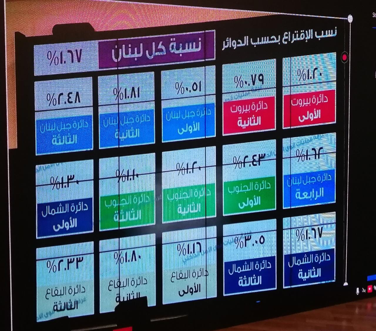 بالأرقام- نسب الاقتراع حتى الساعة التاسعة بحسب الدوائر، مباشرة من وزارة الداخلية والبلديات.