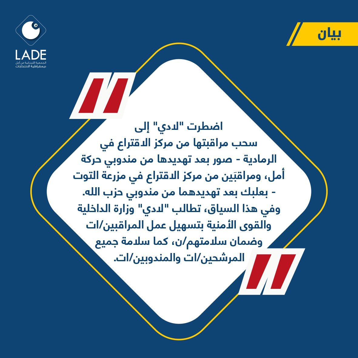 سحب مراقبي لادي من الرمادية ومزرعة التوت بعد تعرّضهم للتهديد من مندوبين تابعين لحركة أمل وحزب الله.