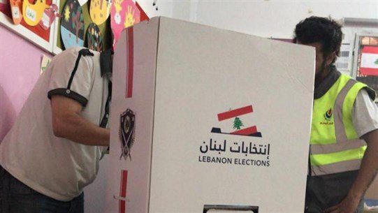 تسجيل مخالفة في أحد أقلام الاقتراع في صور حيث يقف مندوب إحدى اللوائح مع الناخب وراء العازل