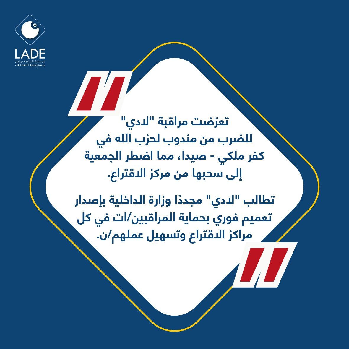 يتكرر التعرّض لمراقبي لادي في بعض المناطق. تطالب الجمعية مجددًا وزارة الداخلية بحماية المراقبين وتسهيل عملهم.