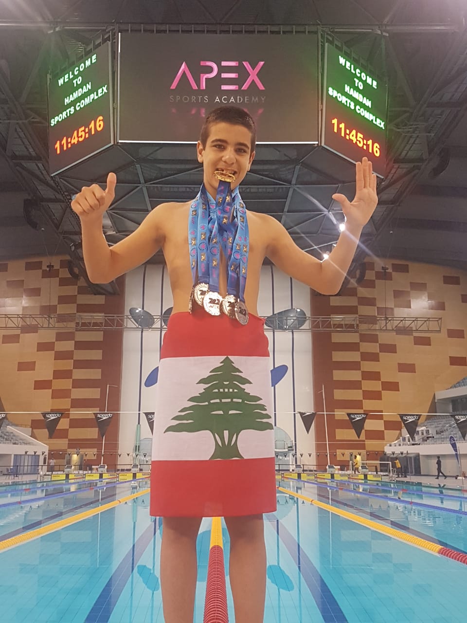 بالصور: ابن الـ13 عاماً يحقّق 6 ميداليات للبنان في السباحة