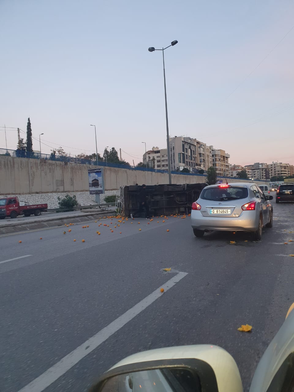 افاد مراسلنا بانقلاب بيك-اب محمّل بالخضار على طريق المطار باتجاه بيروت.