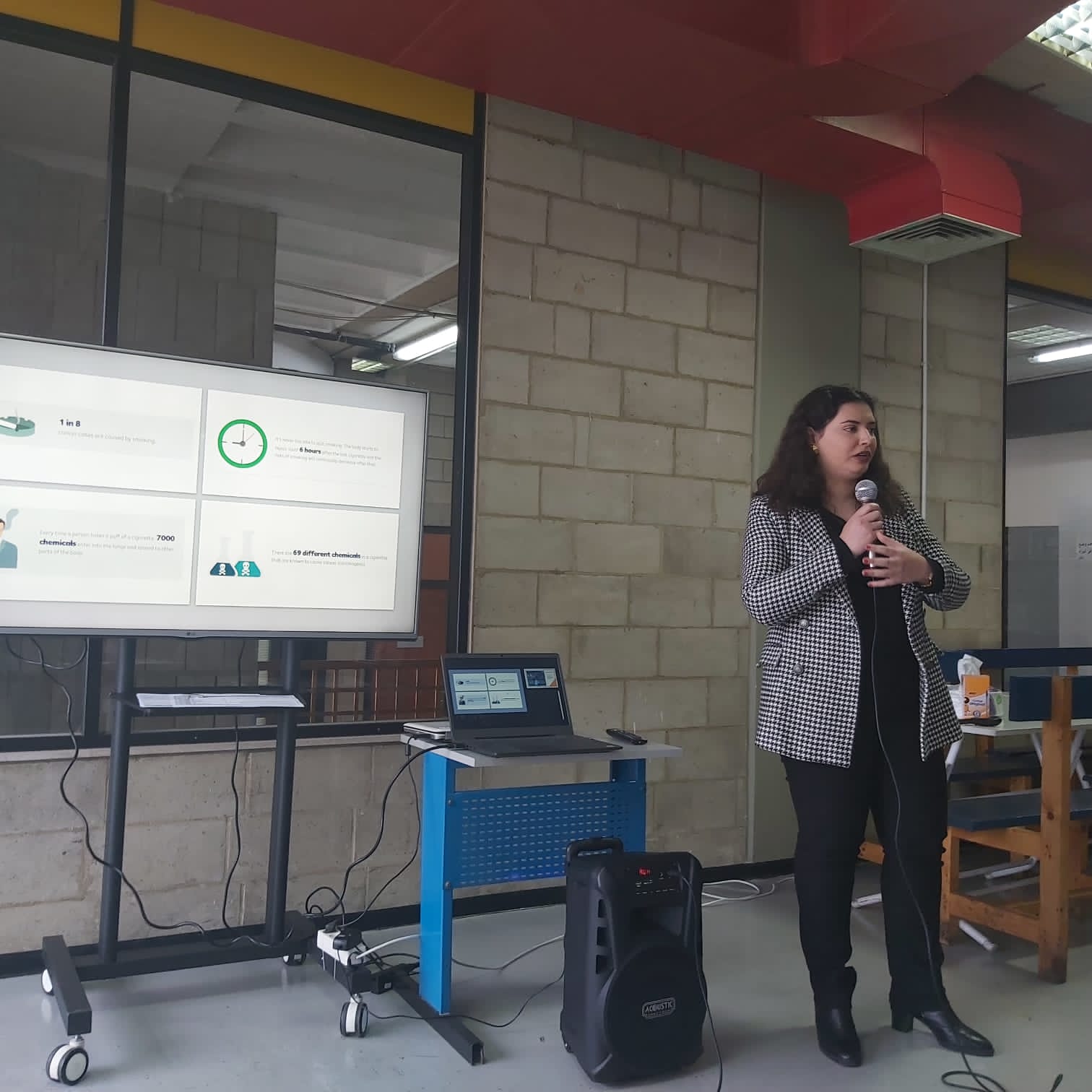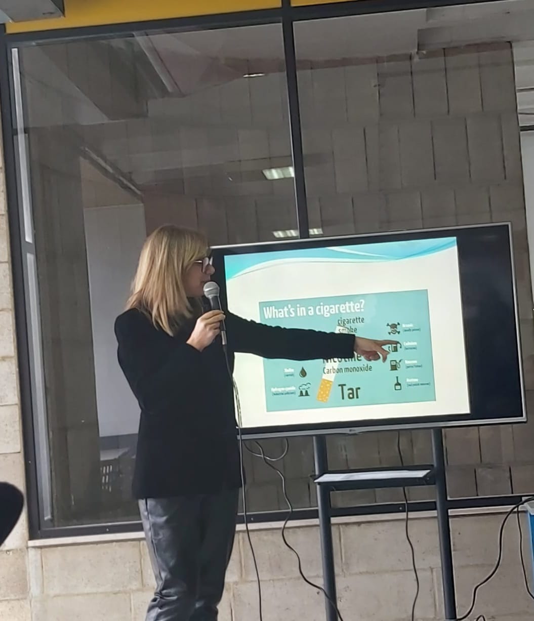 ثم قدمت الأخصائية في الأمراض الداخلية والرئة ومشاكل النوم وعلاج الإدمان على التدخين الدكتورة جوسلين ساسين محاضرة تفاعلية حول مضار التدخين بشكل عام وعلى الجهاز التنفسي بشكل خاص استعرضت فيها مخاطر الإدمان.