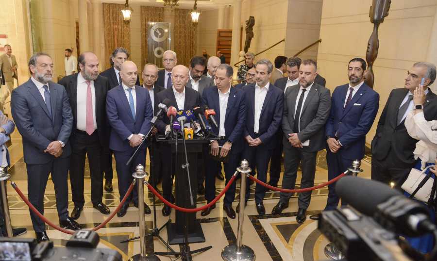 وطالب النواب أيضًا بحماية لبنان من خلال العمل على العودة إلى انتظام المؤسسات التي كرسها اتفاق الطائف، عبر انتخاب رئيس للجمهورية كمدخل لإعادة تكوين السلطة الشرعية، واستعادة الدولة اللبنانية لقراراتها السيادية، وحماية لبنان من تداعيات ما يجري على الصعد كافة، بما يؤدي إلى قيام دولة فعلية، والى اطلاق عمل المؤسسات الدستورية، والبدء بورشة الإصلاح والإنقاذ.