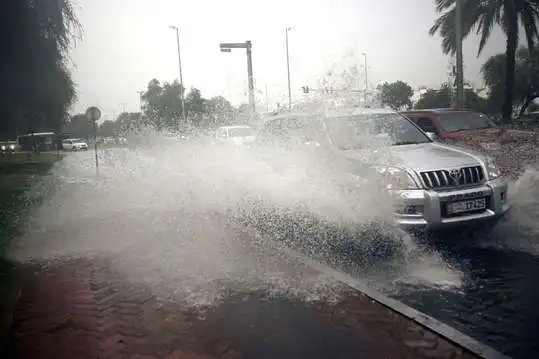 التخفيف إلى سرعة مناسبة وترك مسافة أمان كافية في الأمام وتخفيف السرعة على التجمعات المائية تفاديا لشرود المركبة وأذية الآخرين”.