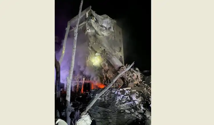 وادت اغارة الى اشتعال حريق في بعض الطوابق. ويضم المبنى مكتبا لحركة “امل”، ومكتبا لجمعية “التنمية الاجتماعية والثقافية” ومكتب نقابة مزارعي التبغ ومعملا للاجبان والالبان والعديد من الشقق السكنية.