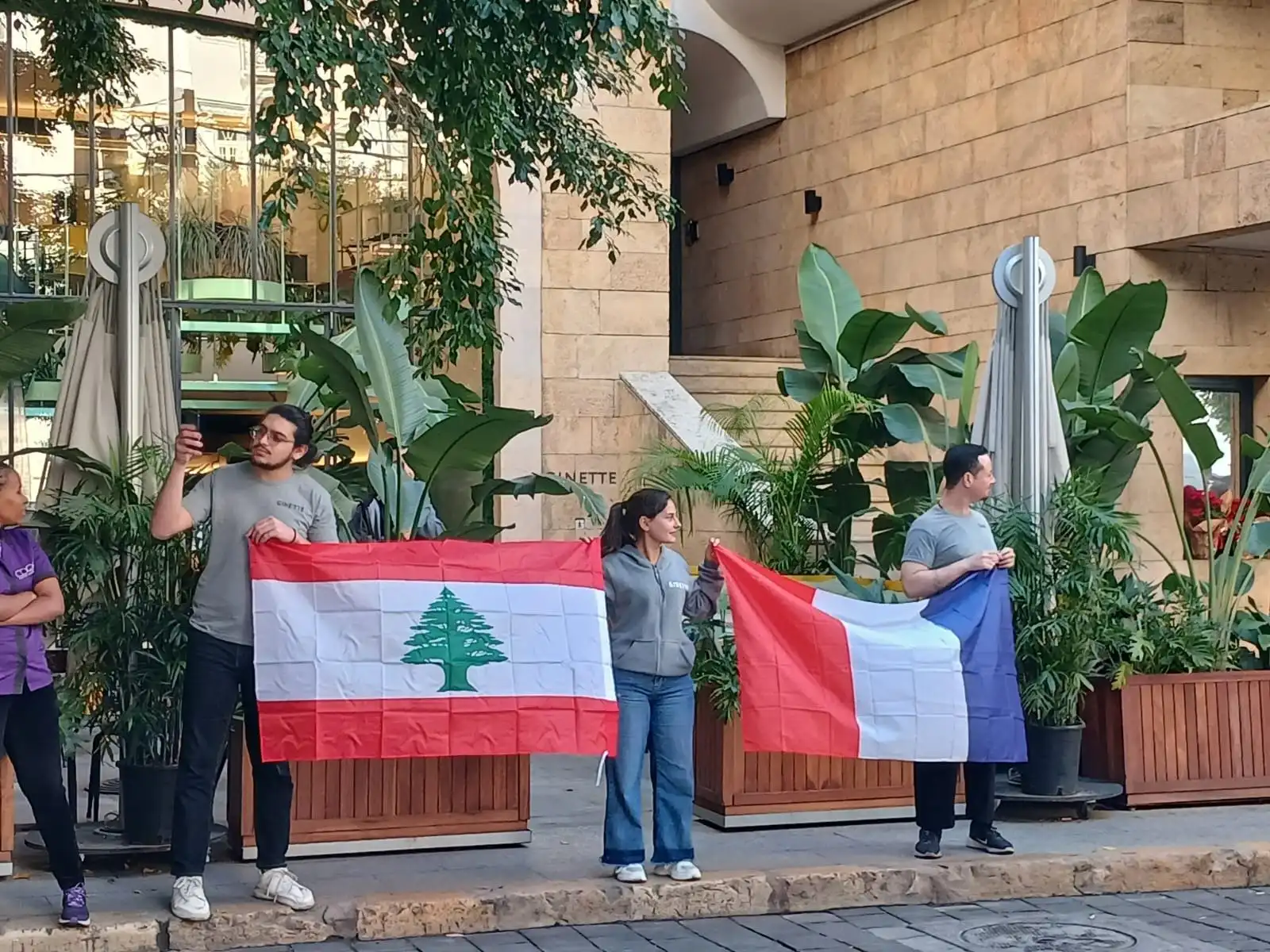 وكان العلمَان اللبناني والفرنسي رُفعا في المنطقة قُبيل وصول ماكرون.