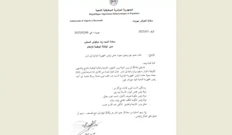 تصحيح حول موعد زيارة المبعوث الخاص للرئيس الجزائري إلى لبنان