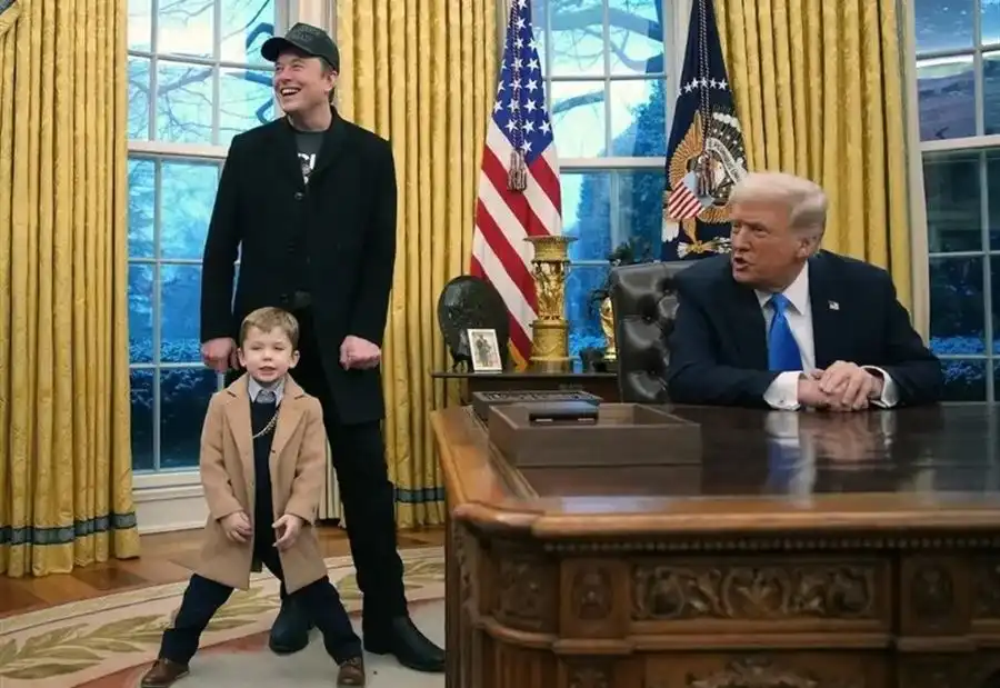 وعقد ماسك، الذراع اليمنى لترامب والمسؤول عن وزارة كفاءة الحكومة الجديدة، والرئيس الأميركي مؤتمرا صحافيًا في المكتب البيضاوي داخل البيت الأبيض حيث ظهر ابن ماسك الذي كان أحيانا يرفعه والده على كتفيه، وأحيانا أخرى كان يتحرك بعفوية الأطفال حول المكتب البيضاوي.