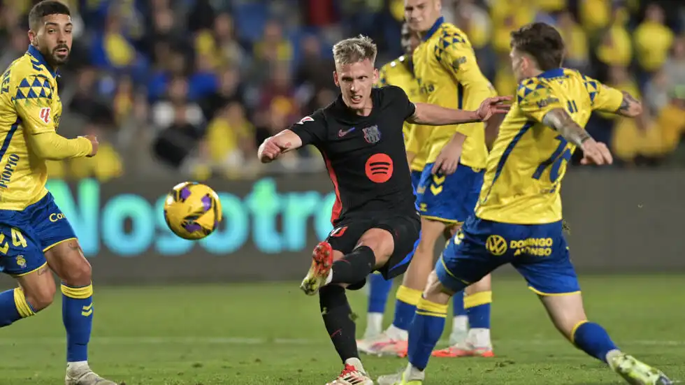 قاد هانز فليك برشلونة لانتصار ثمين على لاس بالماس بنتيجة 2-0 في الجولة 25 من الليغا، في مباراة كان تأثير التبديلات فيها واضحًا. بعد شوط أول متوازن، نجح برشلونة في فك شيفرة دفاع أصحاب الأرض عند الدقيقة 62، عندما قدم لامين يامال تمريرة ساحرة للبديل داني أولمو، الذي استلم الكرة وسددها ببراعة في الشباك، ليسجل الهدف الأول في المباراة.