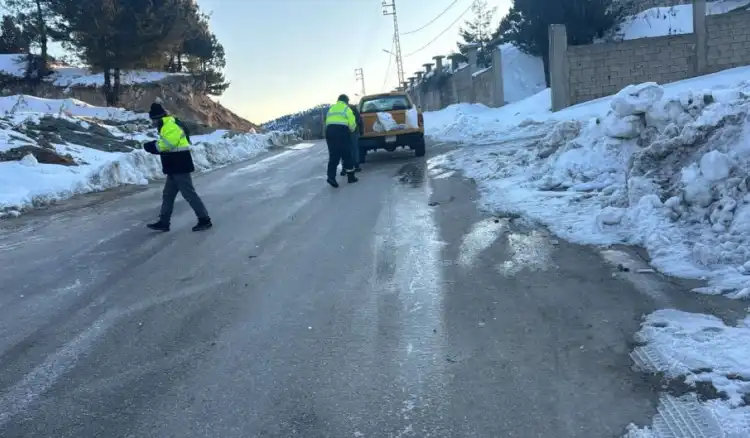 طريق الأرز – عيناتا مقطوعة بسبب تراكم الثلوج.