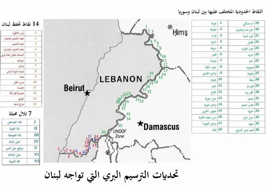 وثمّة مشكلة مستحدثة، على ما أضاف النعماني، فضلاً عن النقاط الـ 13 التي تحفّظ عليها لبنان على الخط الأزرق الذي رسمته الأمم المتحدة، تتمثّل بتمدّد بلدة الغجر الشمالية إلى داخل الأراض اللبنانية، وإقرار هوية مزارع شبعا النهائية مع السلطة السورية الجديدة، وتحديد حدود المزارع العقارية ، التي ستصبح متوافقة ومتلازمة مع الحدود الدولية الشرقية الجنوبية “المفترضة” بين لبنان وسوريا. وهي “مفترضة” لأنها حالياً قابعة تحت الإحتلال “الإسرائيلي”.