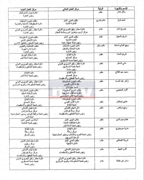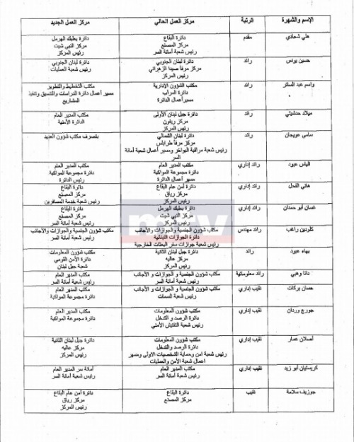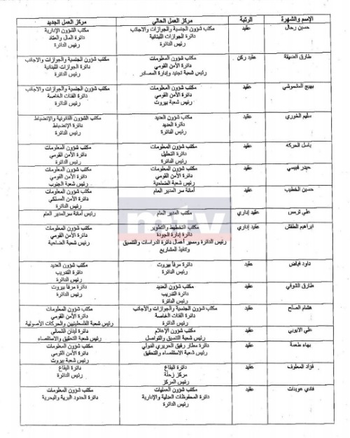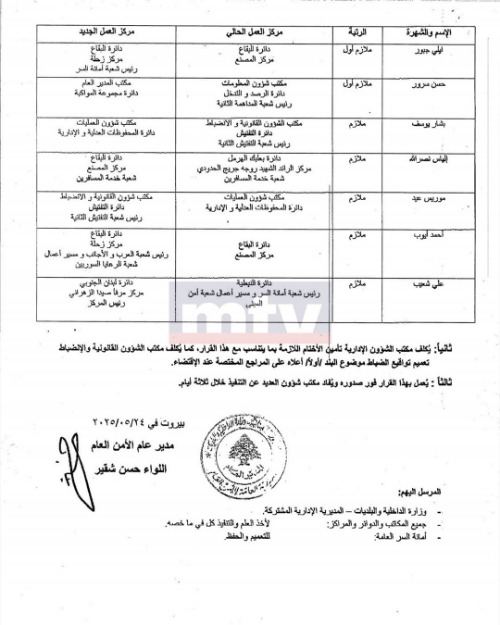 أصدر المدير العام للأمن العام اللواء حسن شقير قراراً قضى بإجراء تشكيلات داخل الجهاز، شملت نقل عددٍ من الضباط من مراكزهم الحاليّة إلى مراكز جديدة.