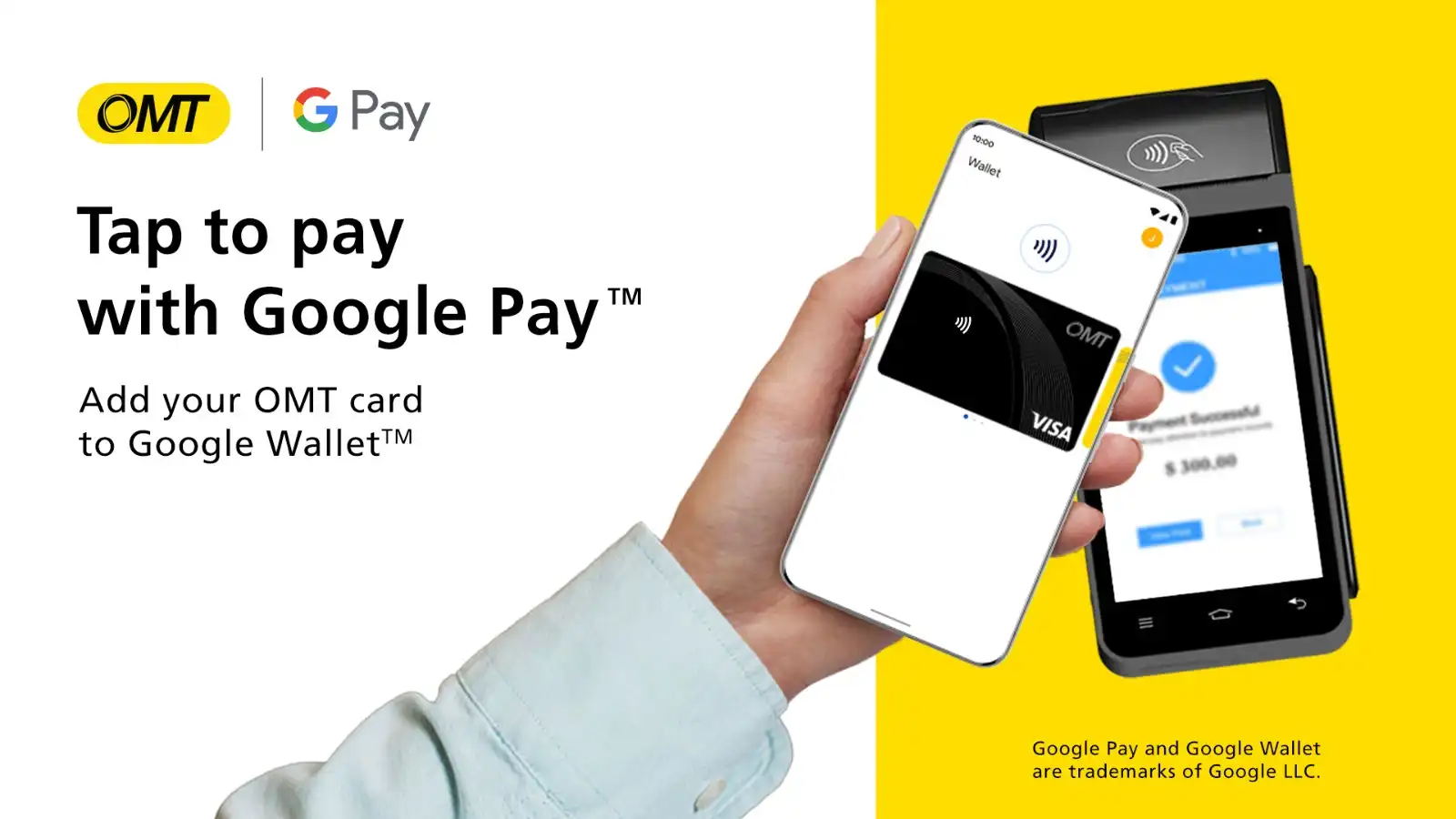 في إطار مواكبة التطوّر الرقمي في مجال المدفوعات المالية، تعلن شركة OMT عن تفعيل خدمة Google Pay لحاملي بطاقة OMT من Visa بحيث أصبح بإمكانهم إضافة بطاقتهم إلى محفظة Google وتسديد مدفوعاتهم بشكلٍ غير تلامسي وآمن عبر أجهزتهم الذكيّة التي تعمل بنظام Android، سواء في المتاجر أو عبر الإنترنت، محليًّا ودوليًّا.