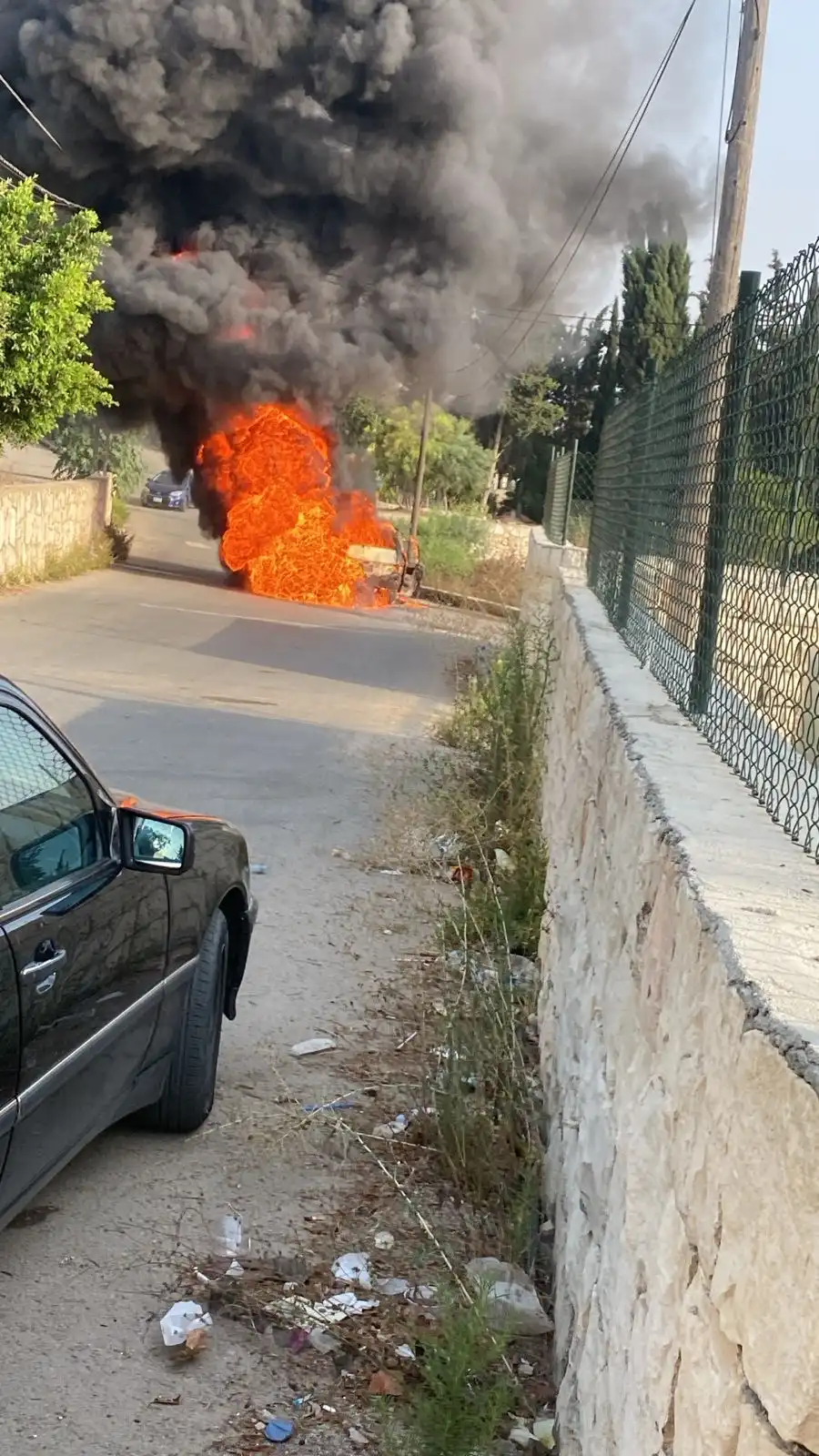 احتراق سيارة قرب جبانة بلدة زفتا قضاء النبطية بسبب احتكاك كهربائي ولا صحة لما يشاع عن غارة استهدفت المنطقة