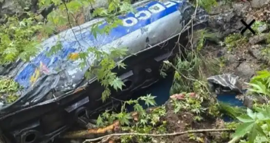 ادى إنحراف صهريج لنقل المحروقات على طريق فيطرون – كفردبيان الى سقوطه في واد سحيق الى جانب الطريق وتحطمه.