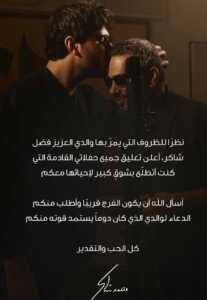 وأضاف البيان: “أسأل اللّه أن يكون الفرج قريباً وأطلب منكم الدعاء لوالدي الذي كان دوماً يستمد قوته منكم، كل الحب والتقدير”.