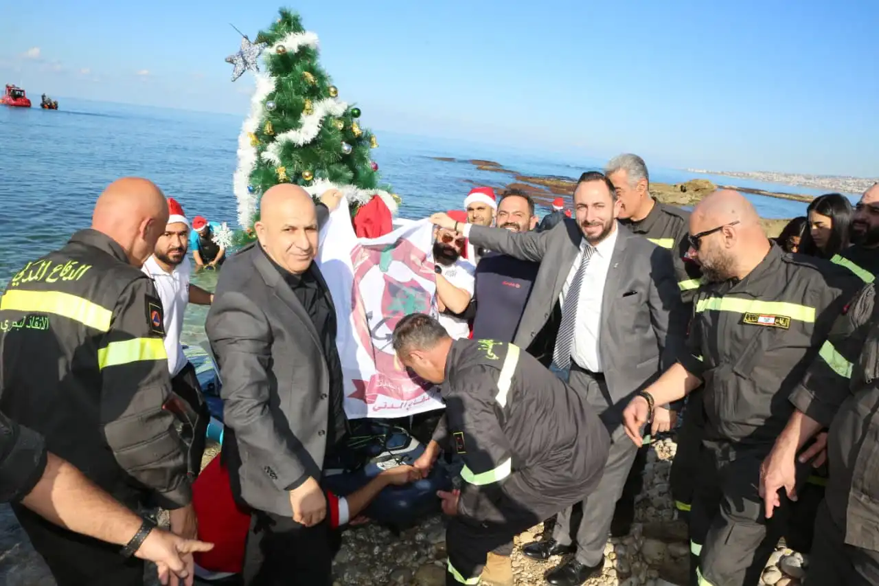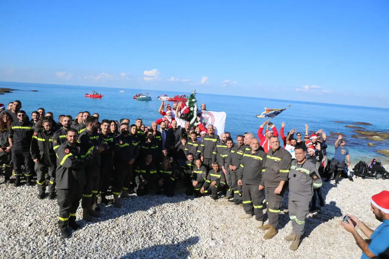 “بمناسبة الأعياد المجيدة، وضع عناصر الدفاع المدني، بالاشتراك مع بلدية العقيبة، وبمشاركة أندية الغطس: U961 Academy، وMarinor Divers، وAquaholic، شجرة الميلاد داخل مغارة على عمق ٣٠ مترًا في البحر قبالة شاطئ العقيبة.
