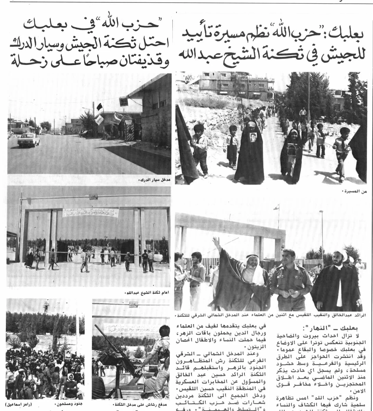 في 3 أيلول 1983 وبدعم من الحرس الثوري الإيراني الموجود في المنطقة، أقدمت مجموعة كبيرة من المسلّحين بقيادة السيد عباس الموسوي الأمين العام الأسبق لـ “حزب اللّه” على احتلال سيار الدرك في بعلبك وثكنة الشيخ عبد اللّه وإطلاق اسم “ثكنة حزب اللّه – الإمام الخميني” عليها، سبقت ذلك، مسيرة شعبية تحت عنوان التأييد دخلت إلى الثكنة واعتصمت فيها، وكان من أبرز منظميها الشيخ محمد يزبك رئيس الهيئة الشرعية في “حزب اللّه”، ليتفاجأ العسكريون في الثكنة في الليل بطوق ضربه عدد كبير من المسلّحين، دخلوا إلى الثكنة مدجّجين بمختلف أنواع الأسلحة الرشاشة والصاروخية وراحوا ينتشرون في الثكنة ويرفعون على أبنيتها ومخافرها رايات إسلامية وشعارات “حزب اللّه”، وتمّ تحويلها بحسب بيان لـ “حزب اللّه” إلى مركز للتدريب والتعبئة الشاملة لـ “الحزب”.