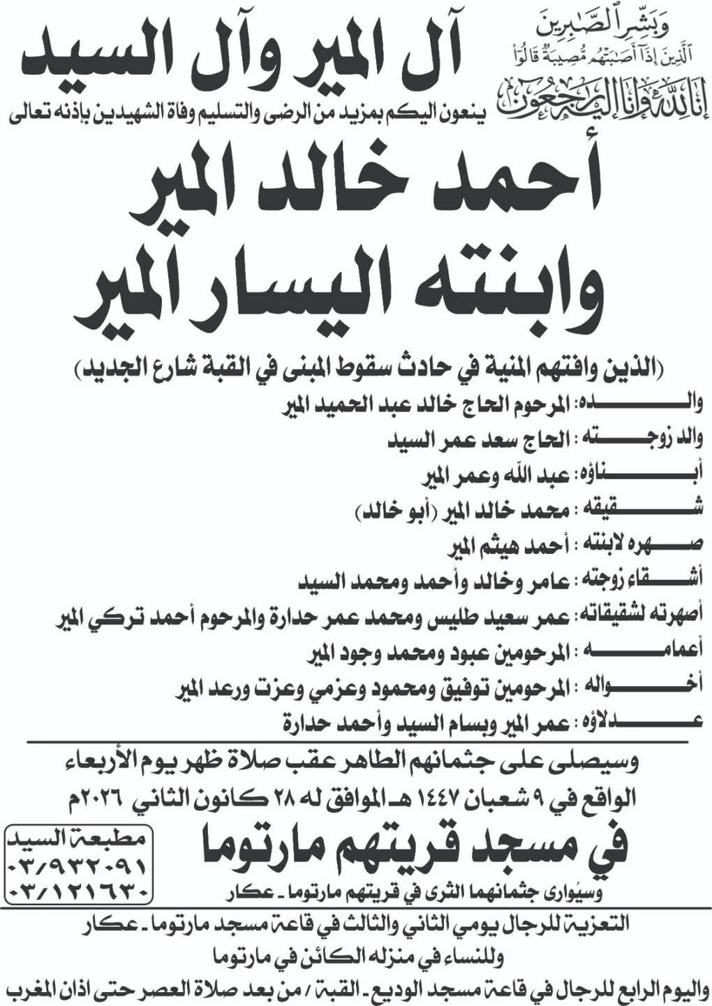 وانتشرت نعوة الضحية اليسار ووالدها على مواقع التواصل الاجتماعي