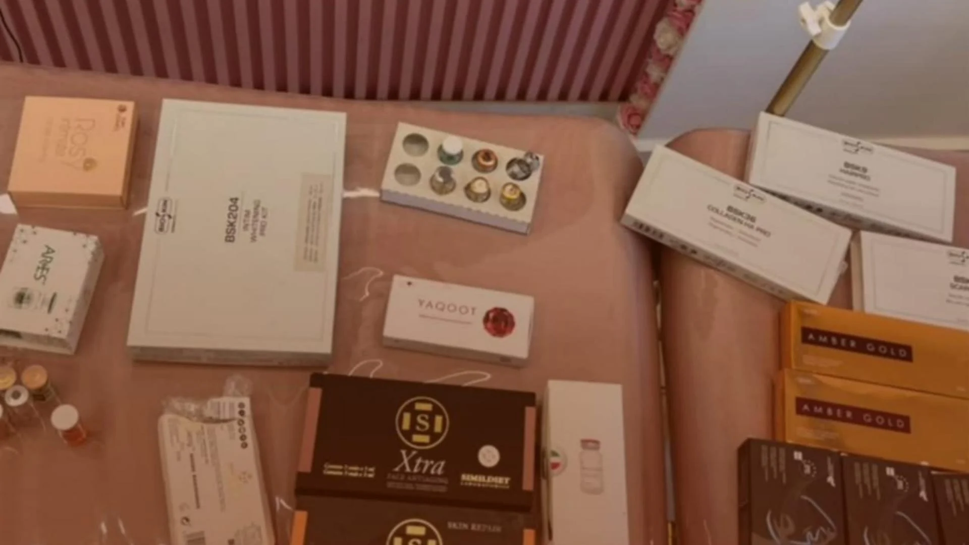 وقد جرى ضبط ثلاث ماكينات ليزر وماكينة لشفط الدهون مجهولة المصدر، تُستخدم لعلاج البشرة والتنحيف، إضافة إلى كمية من الإبر وعبوات الفيلر والبوتوكس مهربة وغير مرخّصة من قبل وزارة الصحة.