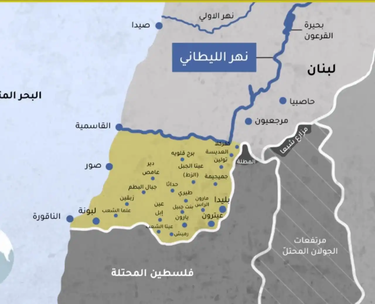 عاجل- بالصورة- الخريطة التي نشرها أدرعي لإخلاء جنوب الليطاني، والجيش الاسرائيلي يتمركز في الخيام