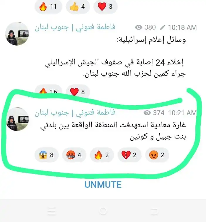 ونذكر بما أفادت به هيئة البث الاسرائيلية، ان هدف الهجوم في منطقة جزين كان مراسل قناة المنار التابعة لحزب الله علي شعيب