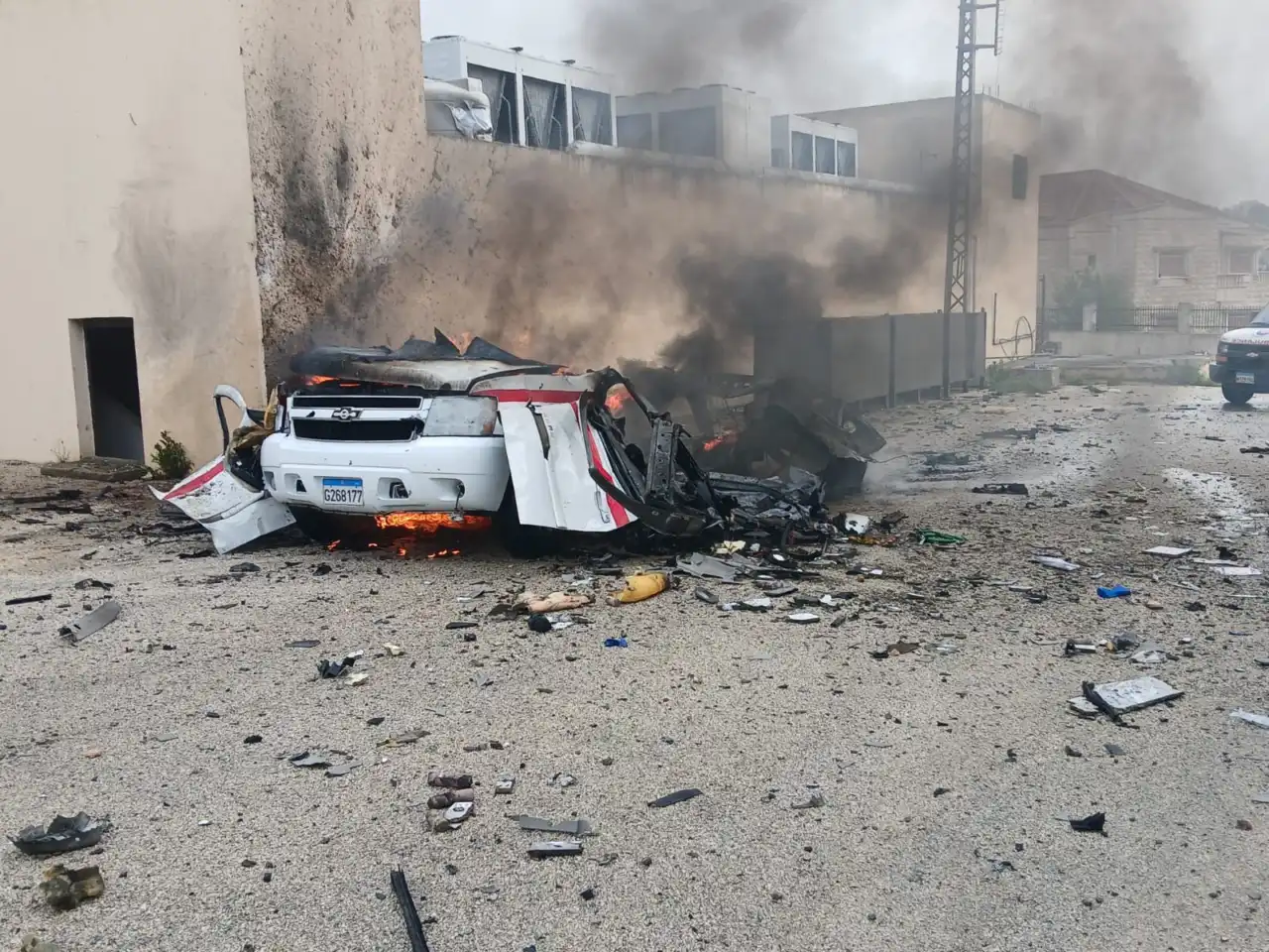 بالصورة: غارة استهدفت سيارة اسعاف في بنت جبيل ما ادى الى سقوط شهيدين