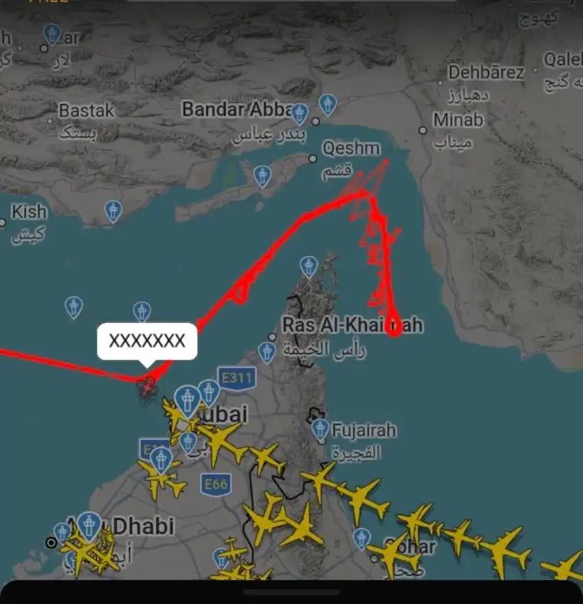 بالصورة: مباشرة فوق مضيق هرمز طائرة استطلاع أميركية تحلق بهذا المسار (الأحمر)*