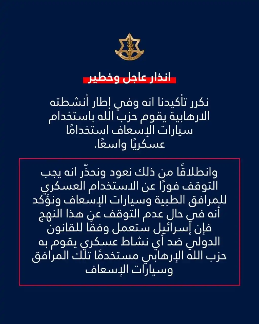 Hala Kabban2026-04-10T10:17:56+03:00عاجل- بالصورة- أدرعي يُنذر المرافق الصحية وسيارات الإسعافHala Kabban2026-04-10T10:17:56+03:0010 نيسان 2026|