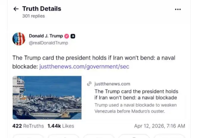 نشر الرئيس الاميركي دونالد ترامب على حسابه على منصة “تروث سوشال” مقالا يتحدث عن إمكان فرض حصار بحري على إيران على غرار ما جرى في فنزويلا.