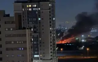بالفيديو- حريق كبير جرّاء هجوم جديد في محيط مطار تبريز الإيراني