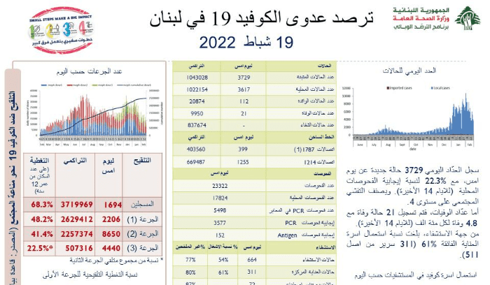 أعلنت وزارة الصحة العامة في تقريرها اليومي تسجيل "3729 إصابة ...