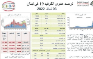 أعلنت وزارة الصحة العامة في تقريرها اليومي تسجيل "9446 إصابة ...