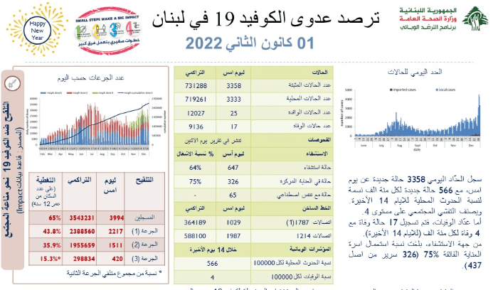 أعلنت وزارة الصحة العامة في تقريرها اليومي تسجيل "3358 إصابة ...