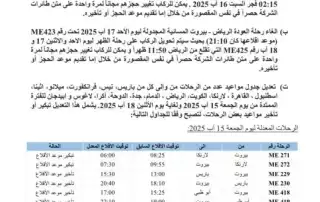 أعلنت شركة طيران الشرق الأوسط الخطوط الجوية اللبنانية أنه "عطفاً ...