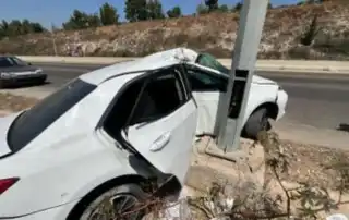 سقط جريحان نتيجة انزلاق سيارة واصطدامها بعامود إنارة على أوتوستراد ...