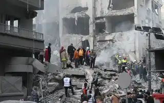 وغارة ثانية من محيط المبنى المستهدف في منطقة ...