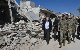 الرئيس نواف سلام يستمع لأحد المواطنين المتضررين من العدوان الاسرائيلي ...